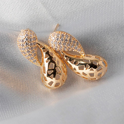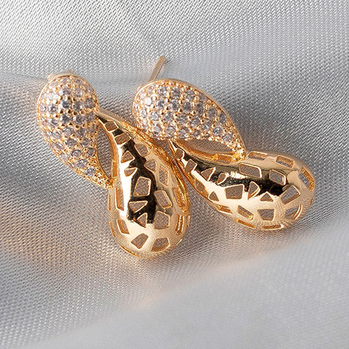 Brinco duas gotas cravejadas e perfuradas