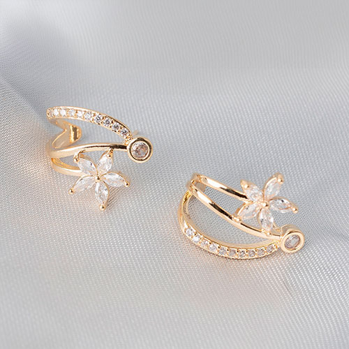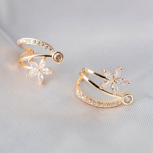 Brinco tipo argola delicado com flores de zirconia