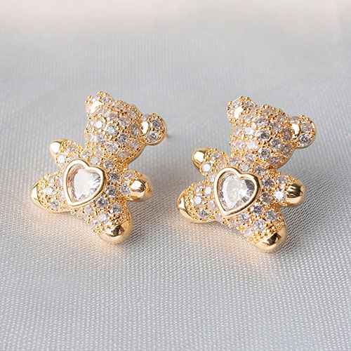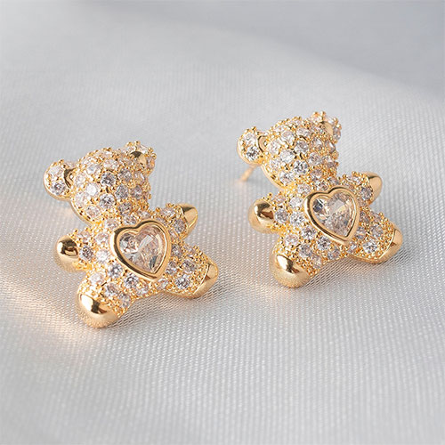 Brinco urso cravejado com zirconia coração