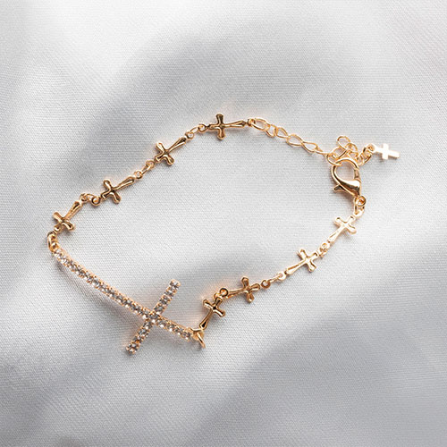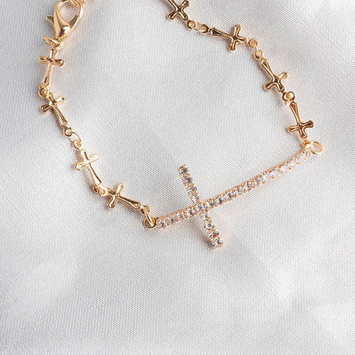 Pulseira de cruz com cruz cravejada