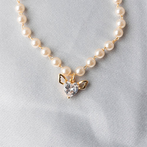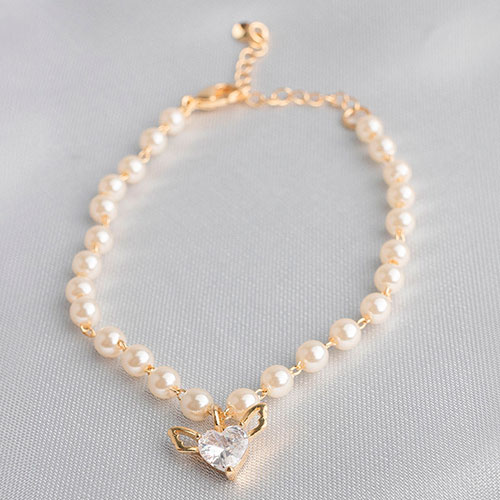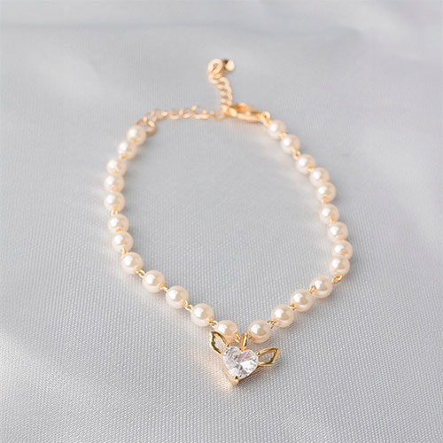 Pulseira de perolas com pingente de coração cupido